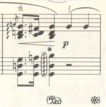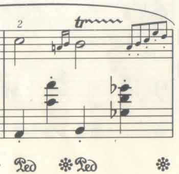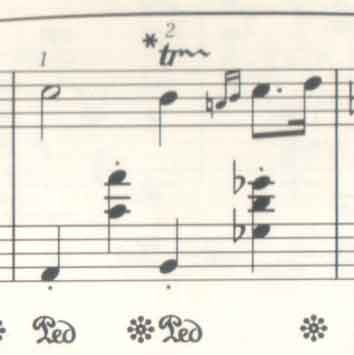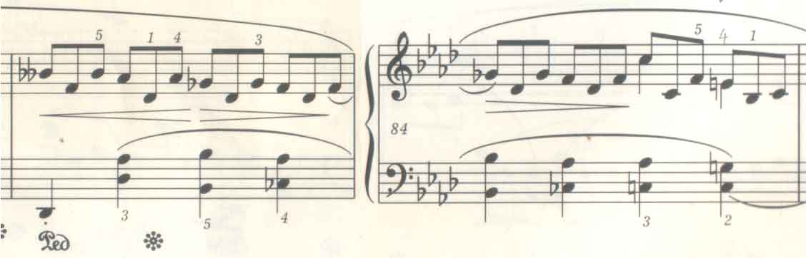 3.および4.はペダルに頼ることなく簡単にきれいに弾けるため人気のある奏法である。