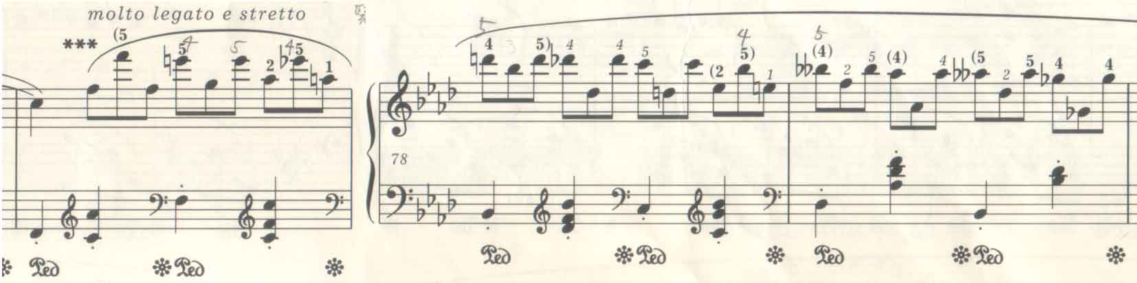 molto legatoは「和声的レガート」を意味する。つまり、この2声の各声部をそれぞれ独立した旋律としてレガートにする。