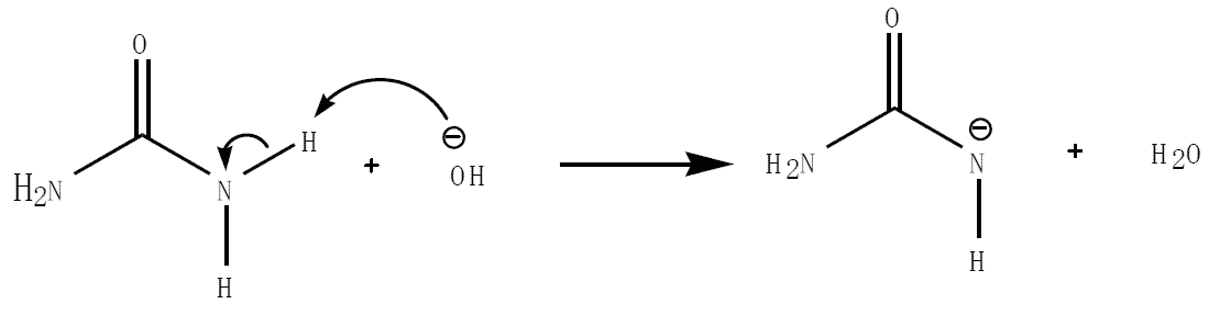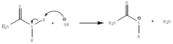 ① 塩基性条件では尿素はプロトンが水酸化物イオンに引き抜かれる。