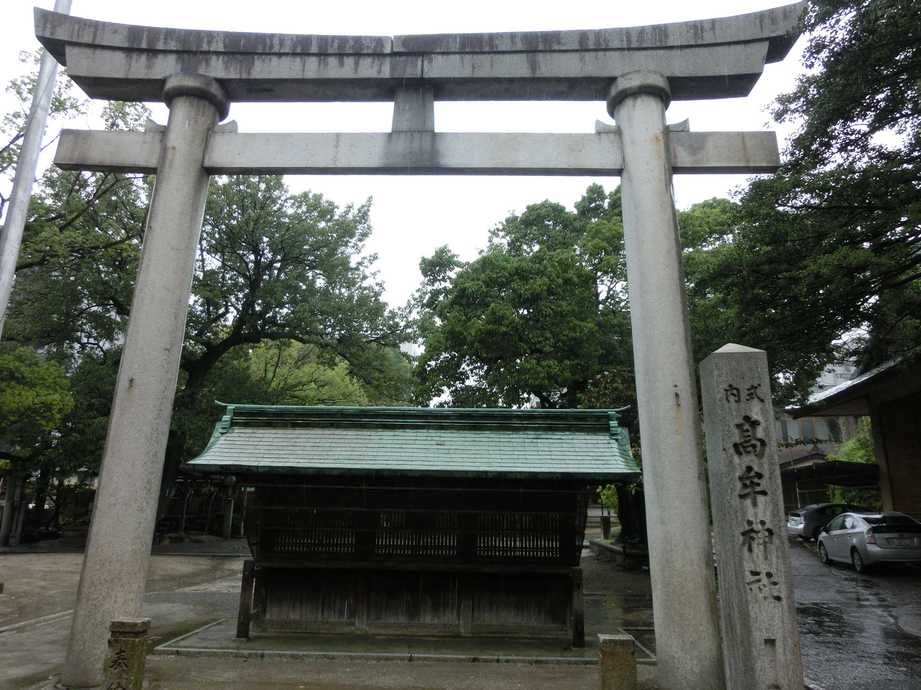 生憎の雨で(というか台風接近中でこのあと電車が止まった)満足に写真が撮れていないが、折角なので載せておこうと思う。どういうわけか本殿の写真を取るのを忘れていた。高牟神社はそこそこメジャーな神社なので、他にも写真をアップしているサイトが多くあるので、どうしても本殿の写真を見たいという方は他のサイトを当たっていただいたら良いと思う。