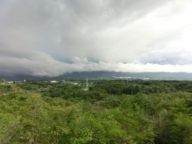 絶景。まさに山の天気という感じで、場所によって天気が全然違う。晴れている場所もあれば、あからさまに豪雨っぽい場所もある。