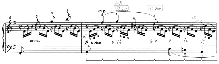 12と56が同じとか、16でh mollに転調した後、17~21のベースが全部hだとかが分かると譜読みが楽になる。